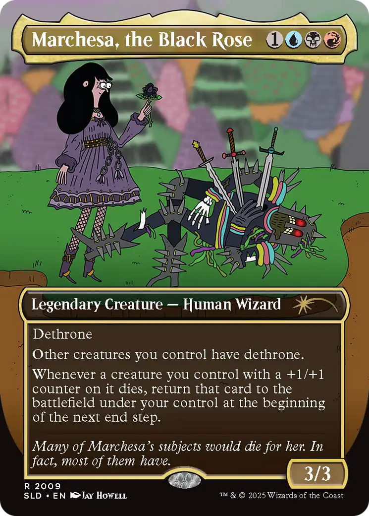 {"id":8418886910108,"title":"Marchesa, the Black Rose [Secret Lair Drop Series]","handle":"marchesa-the-black-rose-secret-lair-drop-series","description":"\u003ctable class=\"singles-description-table\" xmlns=\"http:\/\/www.w3.org\/1999\/html\"\u003e\n\u003ctbody\u003e\n \u003ctr\u003e\n \u003ctd\u003eSet:\u003c\/td\u003e\n \u003ctd\u003eSecret Lair Drop Series\u003c\/td\u003e\n \u003c\/tr\u003e\n \u003ctr\u003e\n \u003ctd\u003eType:\u003c\/td\u003e\n \u003ctd\u003eLegendary Creature — Human Wizard\u003c\/td\u003e\n \u003c\/tr\u003e\n \u003ctr\u003e\n \u003ctd\u003eRarity:\u003c\/td\u003e\n \u003ctd\u003eRare\u003c\/td\u003e\n \u003c\/tr\u003e\n \u003ctr\u003e\n \u003ctd\u003eCost:\u003c\/td\u003e\n \u003ctd\u003e{1}{U}{B}{R}\u003c\/td\u003e\n \u003c\/tr\u003e\n\u003c\/tbody\u003e\n\u003c\/table\u003e\n\u003cdiv class=\"single-description-div\"\u003e\n \u003cdiv class=\"oracle-text\"\u003e\n Dethrone (Whenever this creature attacks the player with the most life or tied for most life, put a +1\/+1 counter on it.)\u003cbr\u003eOther creatures you control have dethrone.\u003cbr\u003eWhenever a creature you control with a +1\/+1 counter on it dies, return that card to the battlefield under your control at the beginning of the next end step.\n \u003c\/div\u003e\n \u003cdiv class=\"flavor-text\"\u003e\n Many of Marchesa's subjects would die for her. In fact, most of them have.\n \u003c\/div\u003e\n\u003ctable class=\"singles-reverse-description-table\"\u003e\n\u003ctbody\u003e\n\u003c\/tbody\u003e\n\u003c\/table\u003e\n\u003cdiv class=\"single-description-div\"\u003e\n\u003c\/div\u003e\n\u003cdiv class=\"catalogMetaData\" style=\"visibility: hidden;\" data-cardtype=\"mtg\" data-cardid=\"101035\" data-tcgid=\"629942\" data-lastupdated=\"2025-08-26T16:40:59.616Z\"\u003e\n\u003c\/div\u003e\n\u003c\/div\u003e\n","published_at":"2025-05-15T23:48:06-05:00","created_at":"2025-05-05T09:46:35-05:00","vendor":"Magic: The Gathering","type":"MTG Single","tags":["Black","Blue","Commander","Duel","Human Wizard","Legacy","Legendary Creature","Normal","Oathbreaker","Penny","Rare","Red","Secret Lair Drop Series","Vintage"],"price":1020,"price_min":1020,"price_max":1450,"available":false,"price_varies":true,"compare_at_price":null,"compare_at_price_min":0,"compare_at_price_max":0,"compare_at_price_varies":false,"variants":[{"id":44957938778268,"title":"Near Mint","option1":"Near Mint","option2":null,"option3":null,"sku":"SLD-2009-EN-NF-1","requires_shipping":true,"taxable":true,"featured_image":null,"available":false,"name":"Marchesa, the Black Rose [Secret Lair Drop Series] - Near Mint","public_title":"Near Mint","options":["Near Mint"],"price":1450,"weight":2,"compare_at_price":null,"inventory_management":"shopify","barcode":null,"requires_selling_plan":false,"selling_plan_allocations":[]},{"id":44957938811036,"title":"Lightly Played","option1":"Lightly Played","option2":null,"option3":null,"sku":"SLD-2009-EN-NF-2","requires_shipping":true,"taxable":true,"featured_image":null,"available":false,"name":"Marchesa, the Black Rose [Secret Lair Drop Series] - Lightly Played","public_title":"Lightly Played","options":["Lightly Played"],"price":1380,"weight":2,"compare_at_price":null,"inventory_management":"shopify","barcode":null,"requires_selling_plan":false,"selling_plan_allocations":[]},{"id":44957938843804,"title":"Moderately Played","option1":"Moderately Played","option2":null,"option3":null,"sku":"SLD-2009-EN-NF-3","requires_shipping":true,"taxable":true,"featured_image":null,"available":false,"name":"Marchesa, the Black Rose [Secret Lair Drop Series] - Moderately Played","public_title":"Moderately Played","options":["Moderately Played"],"price":1240,"weight":2,"compare_at_price":null,"inventory_management":"shopify","barcode":null,"requires_selling_plan":false,"selling_plan_allocations":[]},{"id":44957938876572,"title":"Heavily Played","option1":"Heavily Played","option2":null,"option3":null,"sku":"SLD-2009-EN-NF-4","requires_shipping":true,"taxable":true,"featured_image":null,"available":false,"name":"Marchesa, the Black Rose [Secret Lair Drop Series] - Heavily Played","public_title":"Heavily Played","options":["Heavily Played"],"price":1090,"weight":2,"compare_at_price":null,"inventory_management":"shopify","barcode":null,"requires_selling_plan":false,"selling_plan_allocations":[]},{"id":44957938909340,"title":"Damaged","option1":"Damaged","option2":null,"option3":null,"sku":"SLD-2009-EN-NF-5","requires_shipping":true,"taxable":true,"featured_image":null,"available":false,"name":"Marchesa, the Black Rose [Secret Lair Drop Series] - Damaged","public_title":"Damaged","options":["Damaged"],"price":1020,"weight":2,"compare_at_price":null,"inventory_management":"shopify","barcode":null,"requires_selling_plan":false,"selling_plan_allocations":[]}],"images":["\/\/shop.littlewars.com\/cdn\/shop\/files\/e0cccc40-23f7-584b-8f59-d5c250e9910a_f65e8d27-60fe-4dd1-955a-95c912178e4a.png?v=1756227446"],"featured_image":"\/\/shop.littlewars.com\/cdn\/shop\/files\/e0cccc40-23f7-584b-8f59-d5c250e9910a_f65e8d27-60fe-4dd1-955a-95c912178e4a.png?v=1756227446","options":["Title"],"media":[{"alt":null,"id":33998957674652,"position":1,"preview_image":{"aspect_ratio":0.716,"height":1040,"width":745,"src":"\/\/shop.littlewars.com\/cdn\/shop\/files\/e0cccc40-23f7-584b-8f59-d5c250e9910a_f65e8d27-60fe-4dd1-955a-95c912178e4a.png?v=1756227446"},"aspect_ratio":0.716,"height":1040,"media_type":"image","src":"\/\/shop.littlewars.com\/cdn\/shop\/files\/e0cccc40-23f7-584b-8f59-d5c250e9910a_f65e8d27-60fe-4dd1-955a-95c912178e4a.png?v=1756227446","width":745}],"requires_selling_plan":false,"selling_plan_groups":[],"content":"\u003ctable class=\"singles-description-table\" xmlns=\"http:\/\/www.w3.org\/1999\/html\"\u003e\n\u003ctbody\u003e\n \u003ctr\u003e\n \u003ctd\u003eSet:\u003c\/td\u003e\n \u003ctd\u003eSecret Lair Drop Series\u003c\/td\u003e\n \u003c\/tr\u003e\n \u003ctr\u003e\n \u003ctd\u003eType:\u003c\/td\u003e\n \u003ctd\u003eLegendary Cr